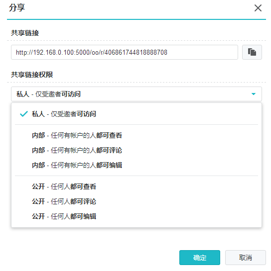 文件分享可允許用戶將某個特定的文件突破權(quán)限設(shè)定,自定義權(quán)限和指定用戶,將需要的文件進(jìn)行合理的工作協(xié)作。點(diǎn)擊想要進(jìn)行協(xié)作的文件。在上方工具欄中,點(diǎn)擊按鈕進(jìn)行分享。在彈出的界面中,可以設(shè)定被分享的權(quán)限。設(shè)定好后,可以復(fù)制共享的鏈接發(fā)送給制定的用戶,即可完成分享操作。
