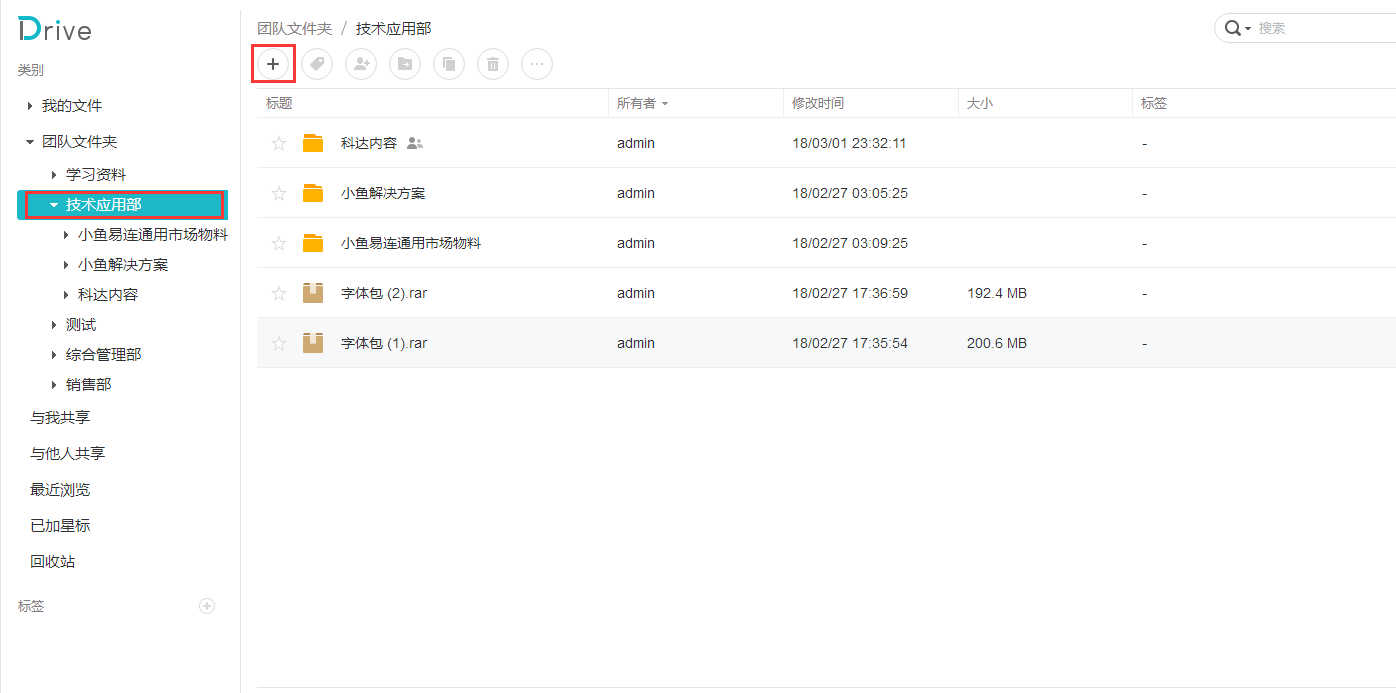 用戶一般使用Drive方式登陸。在公司內(nèi)網(wǎng)環(huán)境下,輸入地址后將登入系統(tǒng)。登陸成功后,右側(cè)類別欄中將出現(xiàn)的文件、團(tuán)隊文件夾、與我共享、與他人共享、最近瀏覽、已加星標(biāo)、回收站等項目。下面將對如上功能進(jìn)行一一介紹。